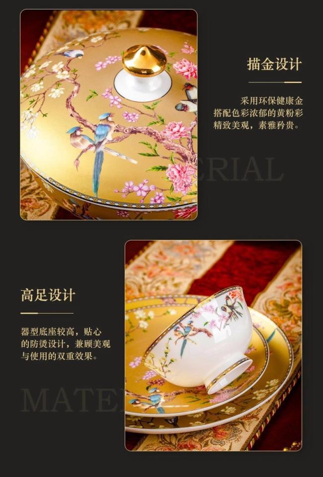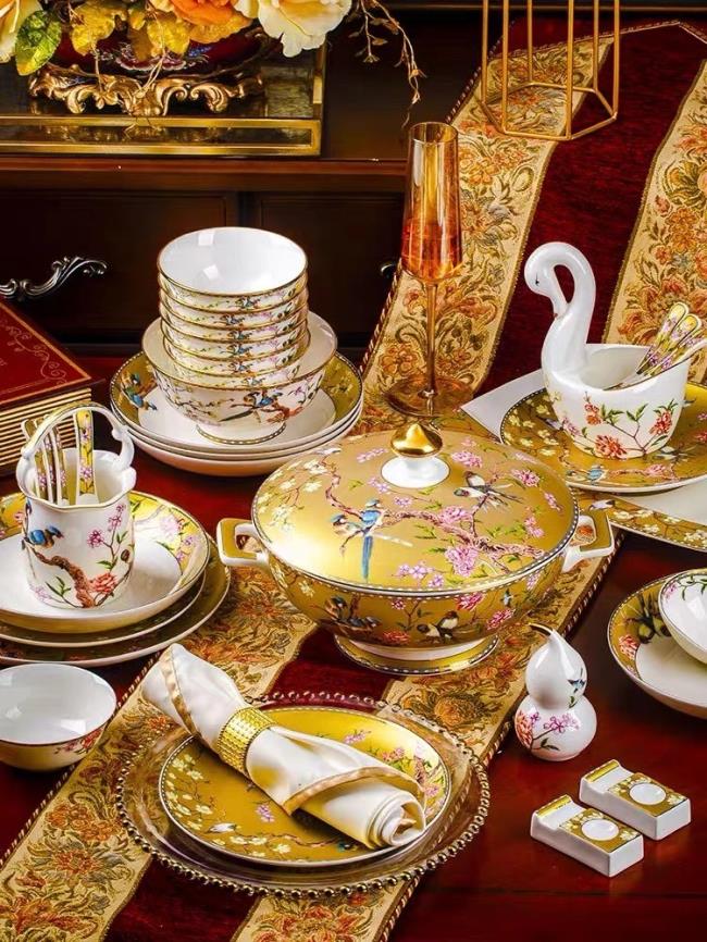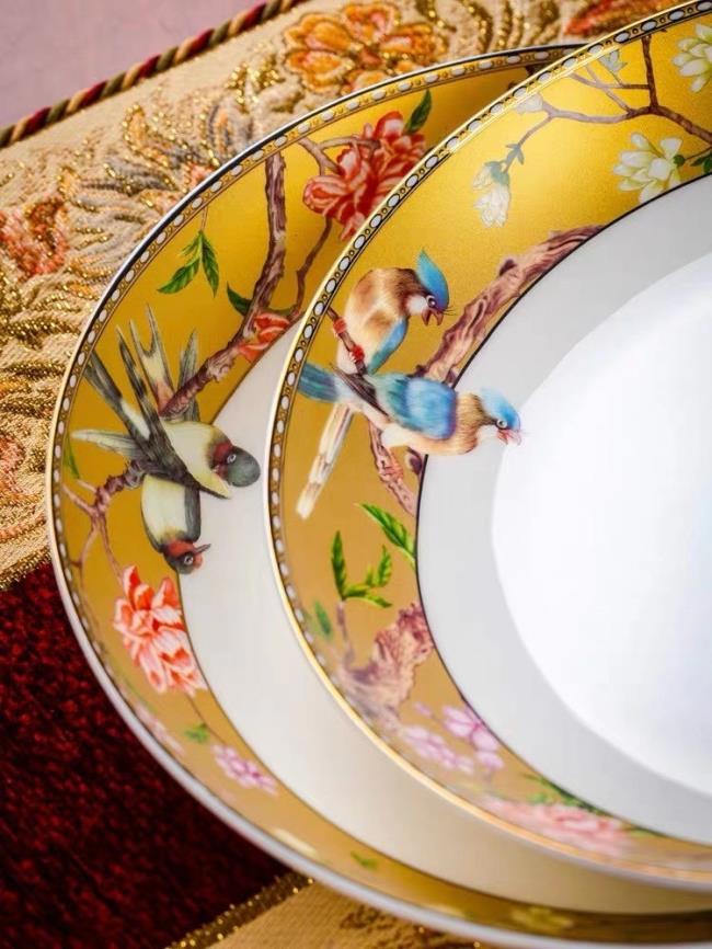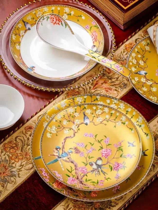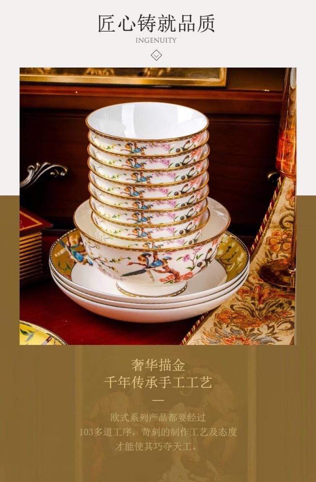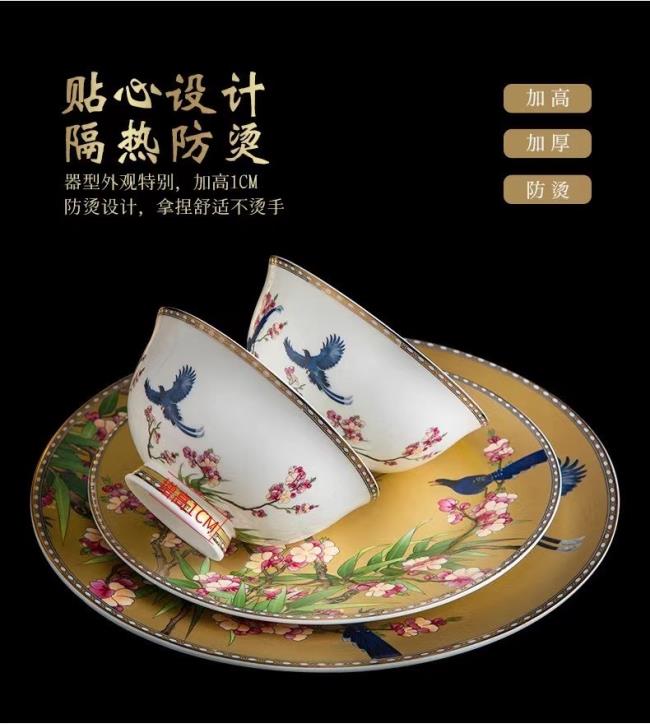 【簡述】家用中式宮廷碗金邊高檔骨瓷餐具
