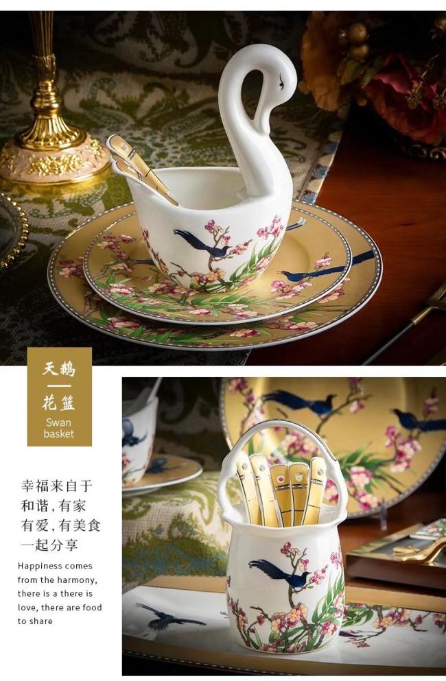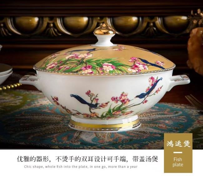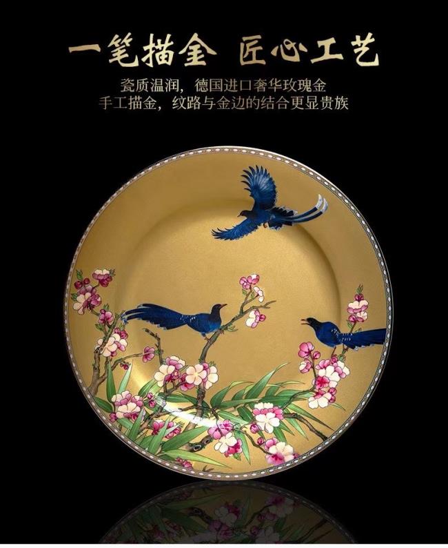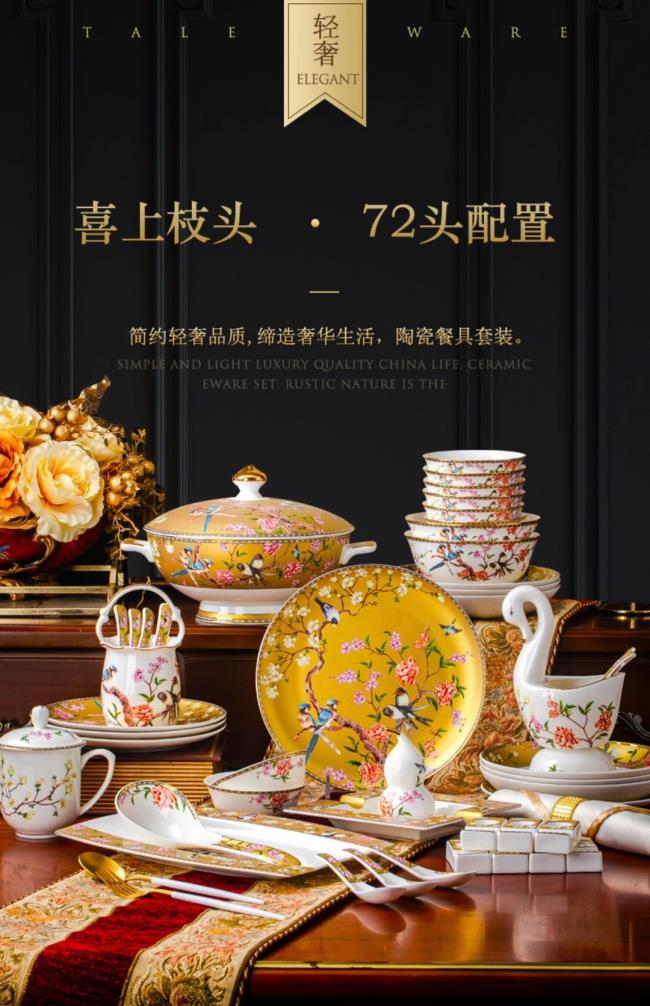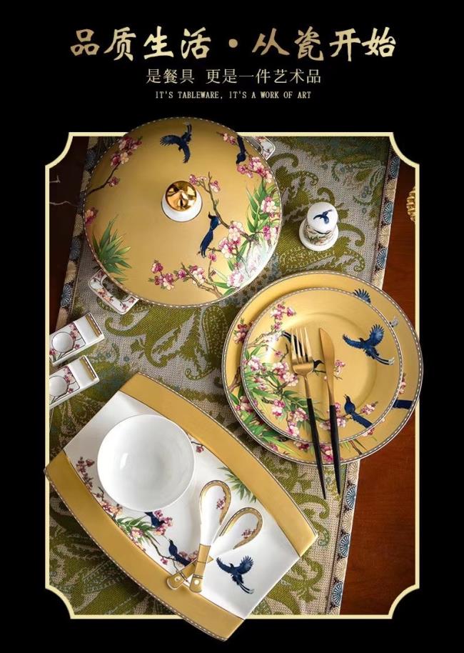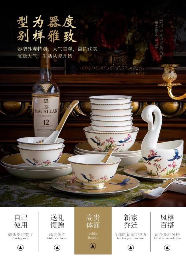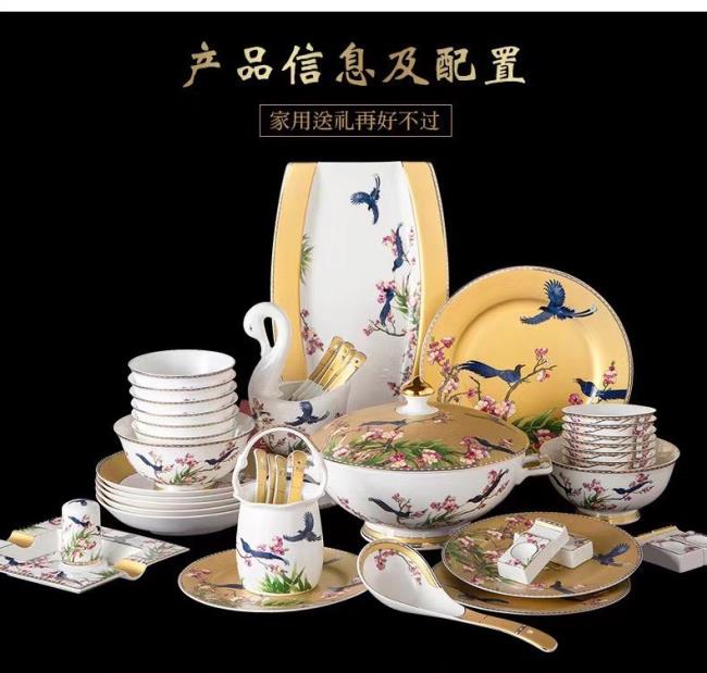 【簡述】家用中式宮廷碗金邊高檔骨瓷餐具