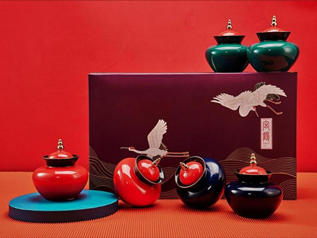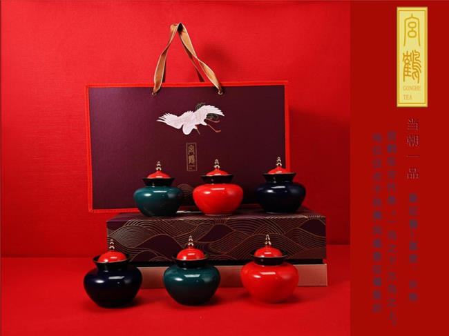 宮之意在于當(dāng)今正統(tǒng),元素源于清朝官帽。意欲傳達(dá)官方正統(tǒng)之誠(chéng)心、誠(chéng)信。再以色釉撞色工藝突出產(chǎn)品特點(diǎn),以紅色為首,以金封頂。寓意紅頂節(jié)節(jié)高之意。