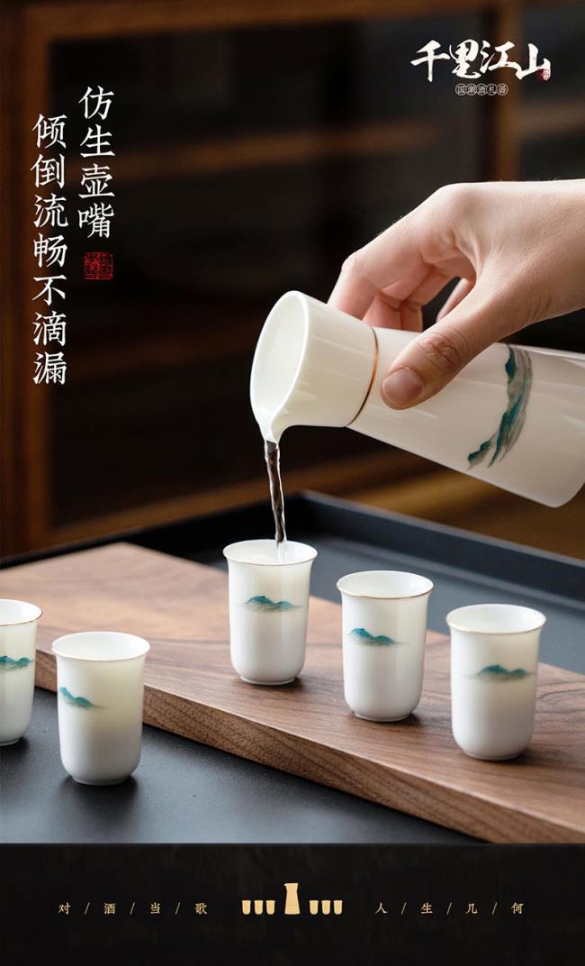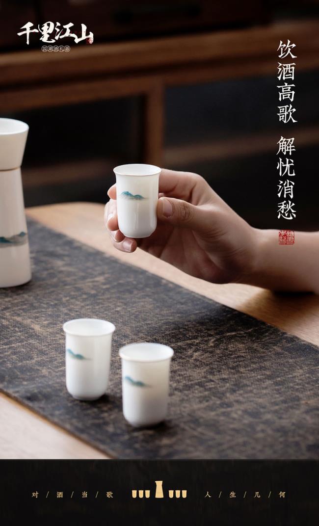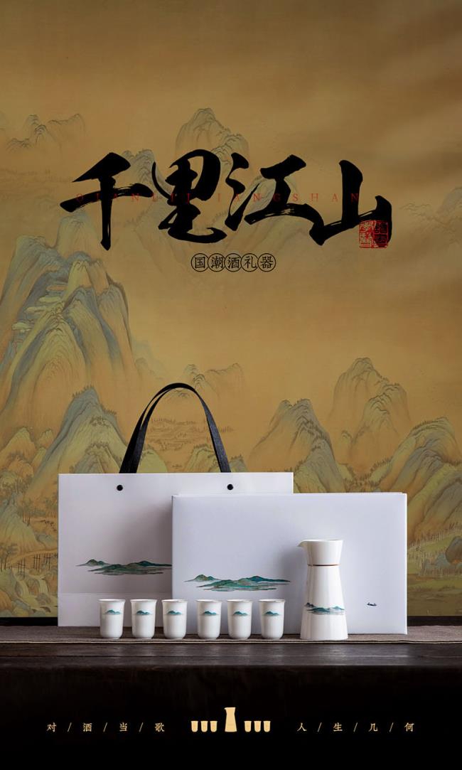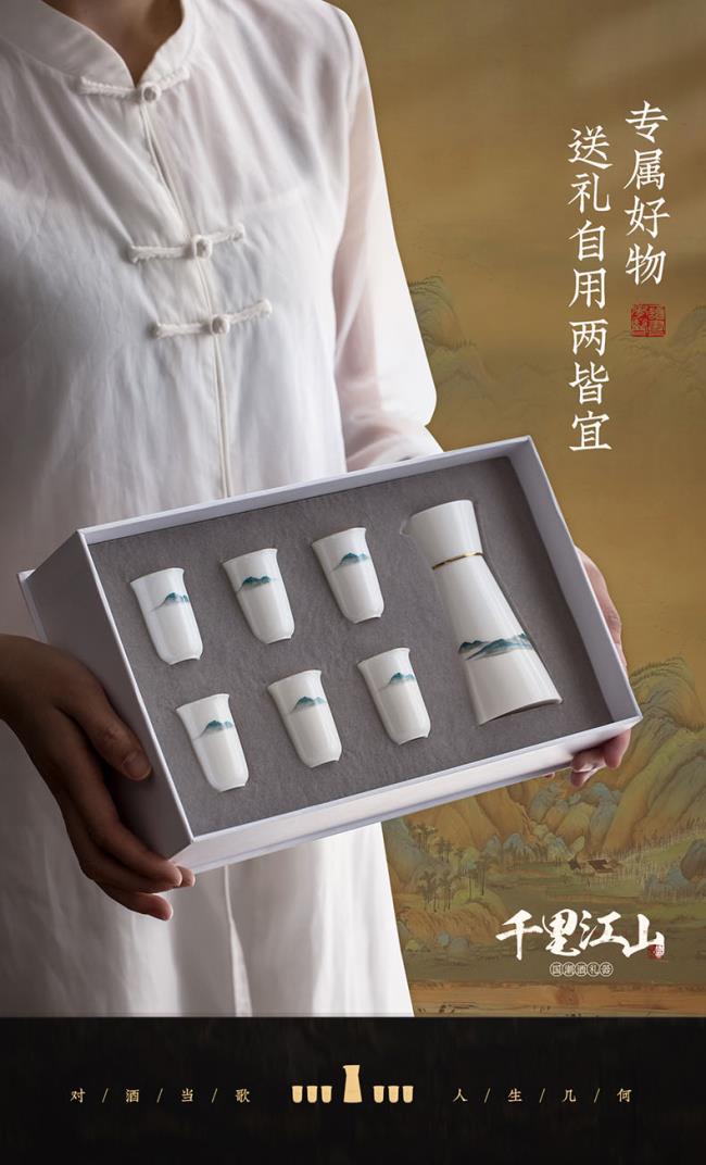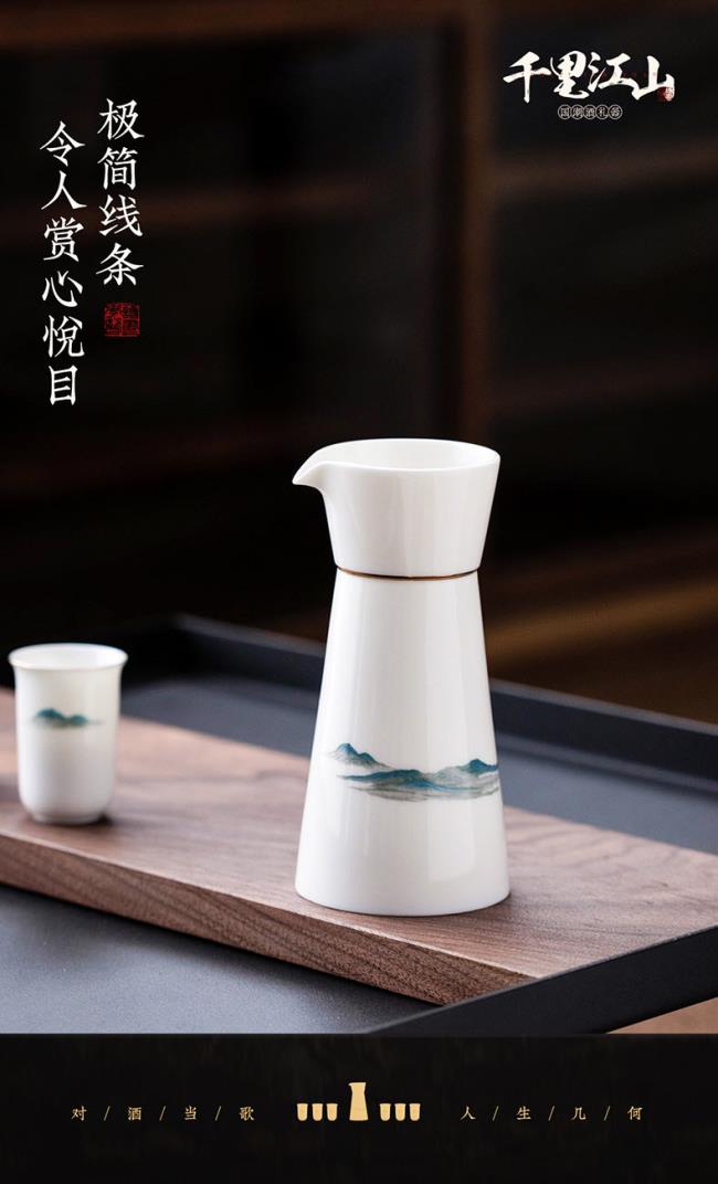 【簡述】白瓷為底,王希孟的《千里江山圖》躍然其上,釉上烤花工藝,伸手可觸,詩意大氣