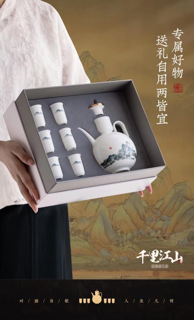 酒壺:容量580ml,口徑40mm,高170mm酒杯:容量10ml,口徑35mm,高49mm材質(zhì)工藝:玉白瓷,浮雕花,手描黃金線禮盒配置:酒壺1+酒杯6+禮盒1+手提袋1