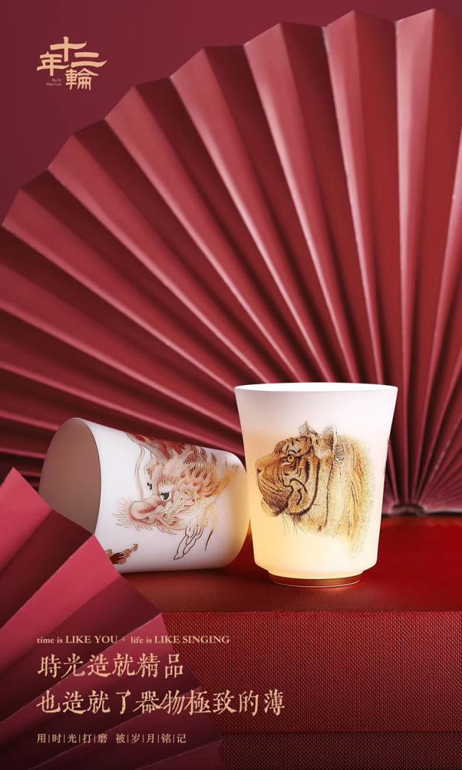 材質(zhì)工藝:羊脂玉瓷,浮雕金花,手描黃金底