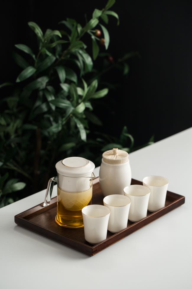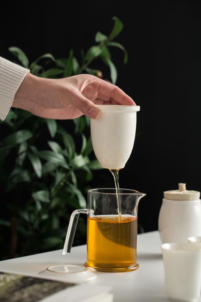 配法:100ml玉白瓷杯x4,300ml玻璃杯x1,玉白瓷陶瓷茶濾x1,陶瓷蓋x1
