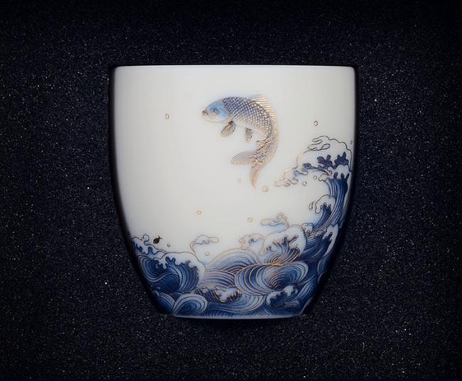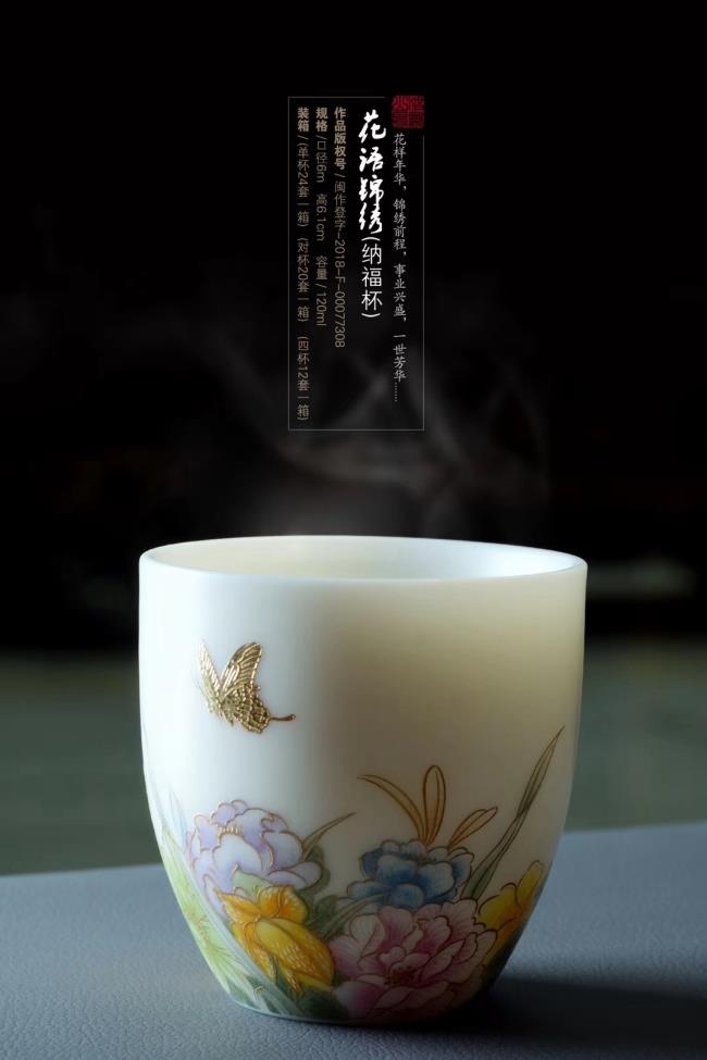 材質(zhì)工藝:高溫羊脂玉瓷胎,浮雕金花,手描黃金