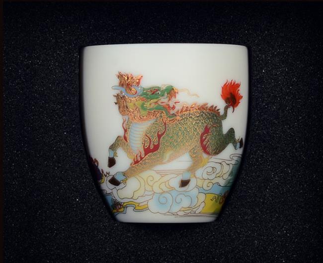 【簡(jiǎn)述】高溫羊脂玉瓷胎,浮雕金花,手描黃金