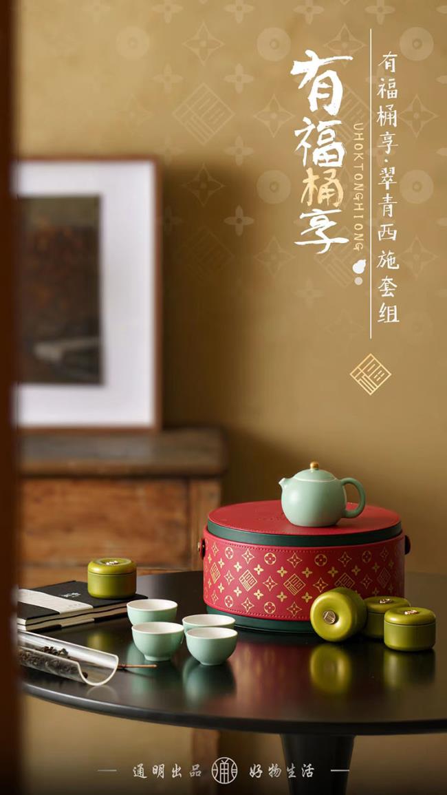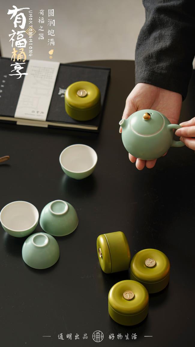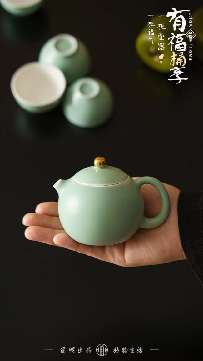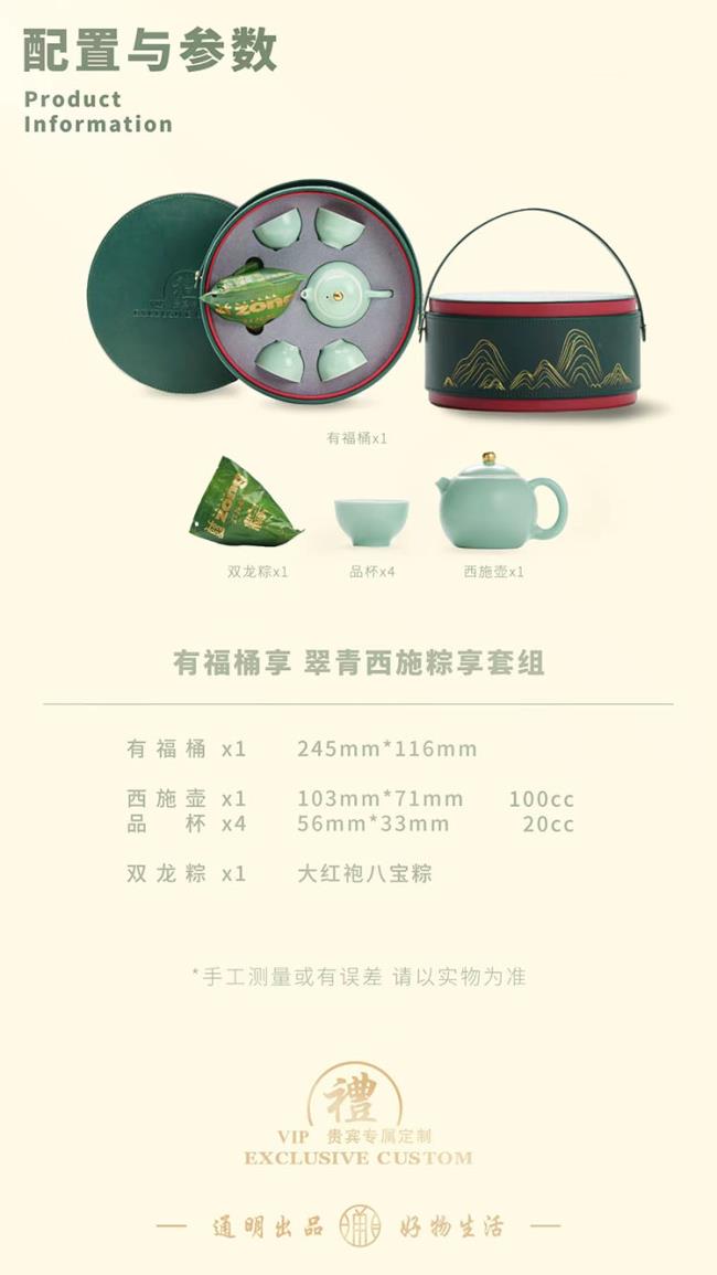 配置:100ml西施壺x1,20ml品茗杯x4,雙龍粽子x1,綠色有福桶x1。