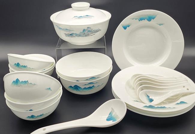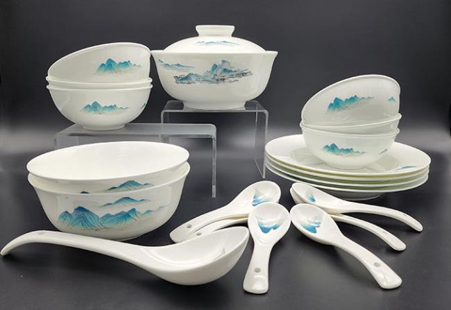 配置:6* 4.5寸米飯碗 ,6* 小調(diào)羹 ,4* 8寸菜盤,2* 7寸深湯碗,1+1* 帶蓋湯碗,1* 大湯勺