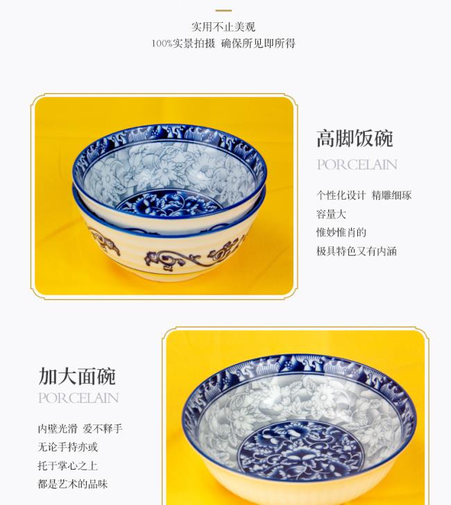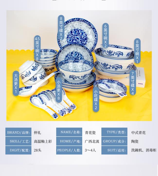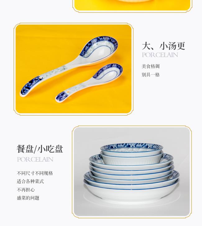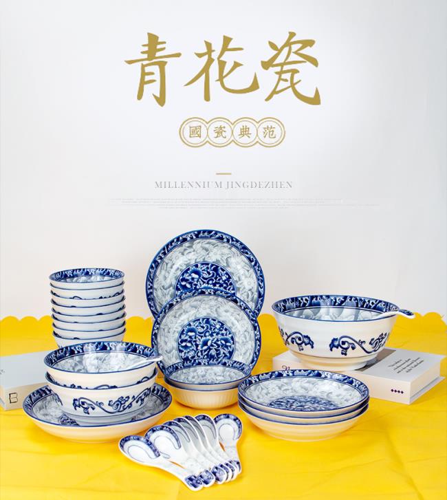 【簡述】中國風青花碗碟套裝禮盒碗盤子家用餐具輕奢陶瓷碗筷勺高檔組合裝